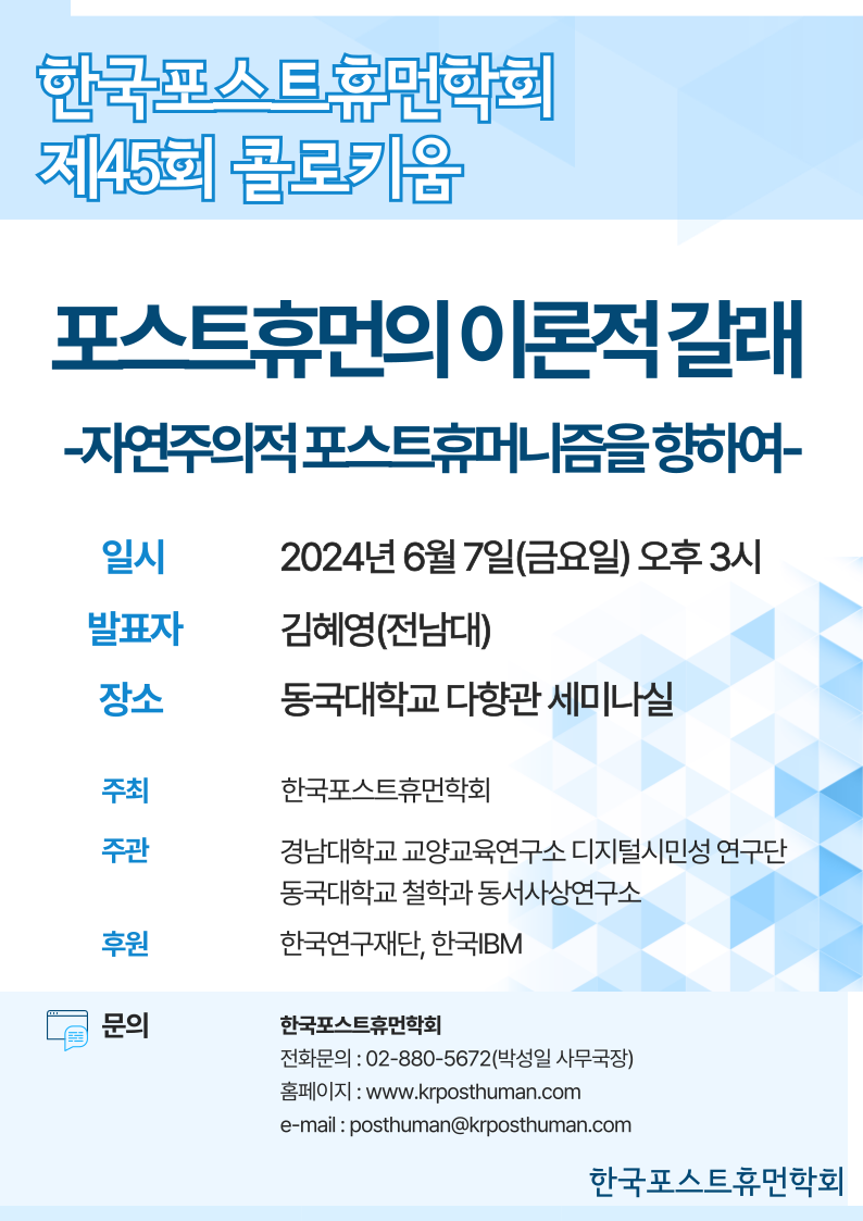 [한국포스트휴먼학회] 2024년도 제45회 공동 콜로키엄 개최