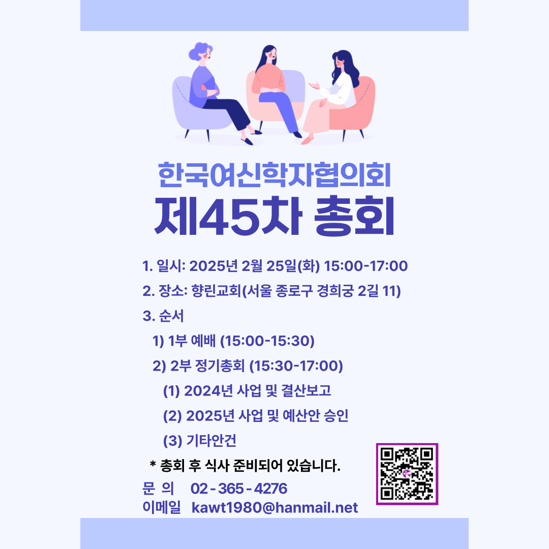 회칙 제4장 14조에 의거하여 회원님들께 <제45차 정기 총회>를 공지합니다.