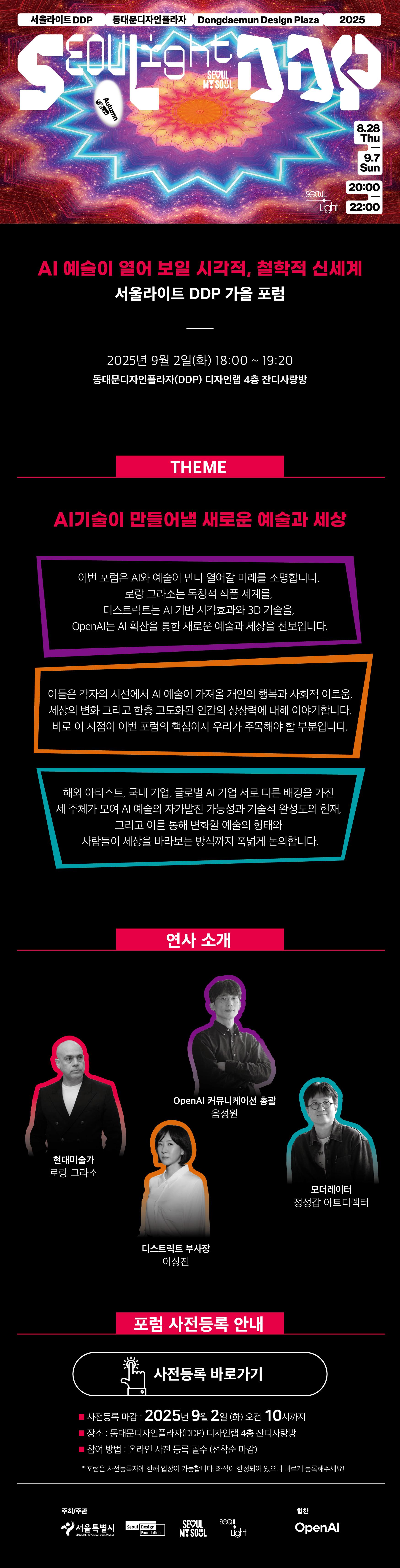 또한, 행사 기간중인 9/2(화) 18시부터 '서울라이트 DDP 2025 가을 포럼'이 진행됩니다.