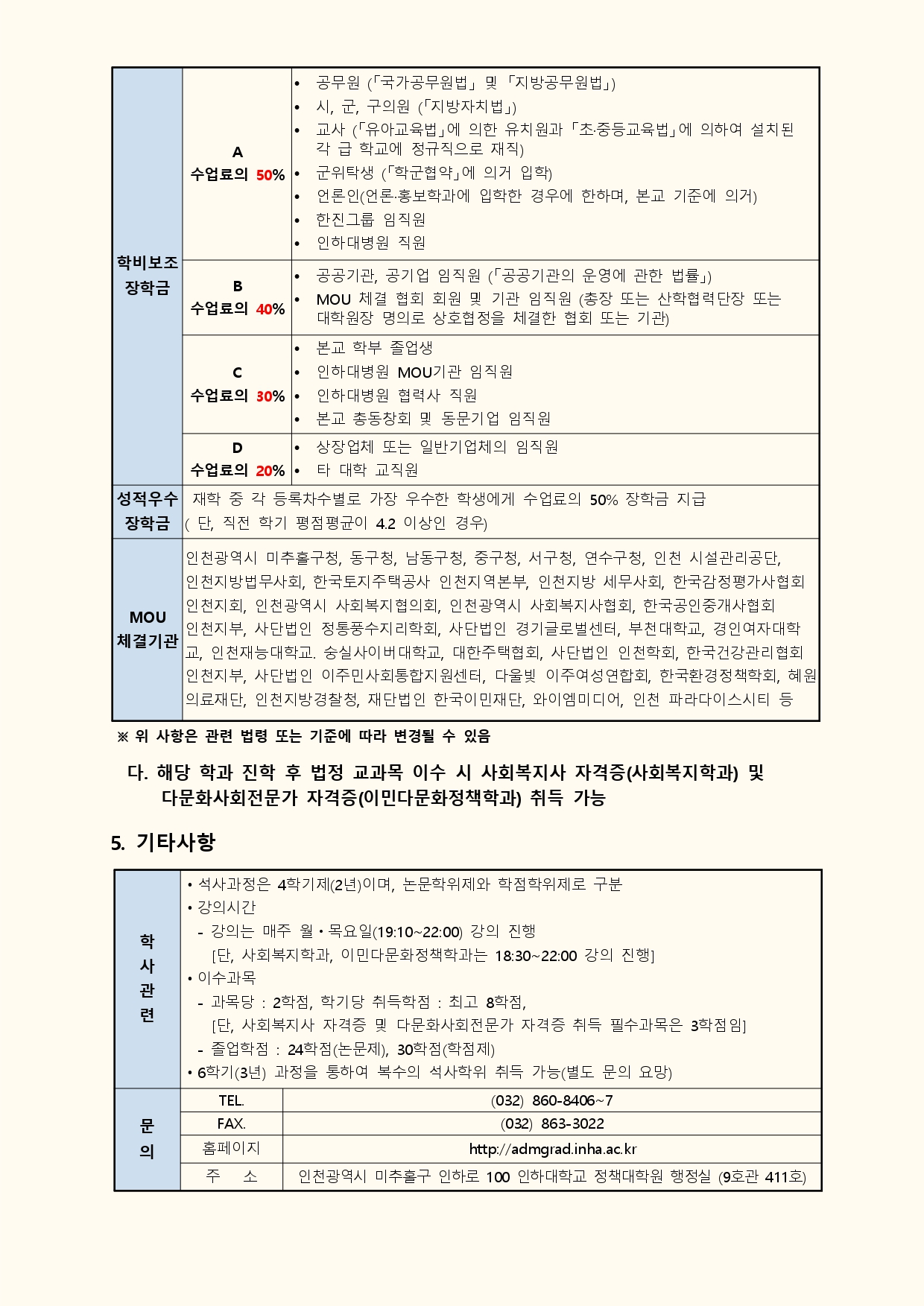 2. 인하대학교 정책대학원(야간) 2024학년도 1학기 신입생 모집을 다음과 같이 안내해 드리니, 회원 여러분의 많은 관심 바랍니다.