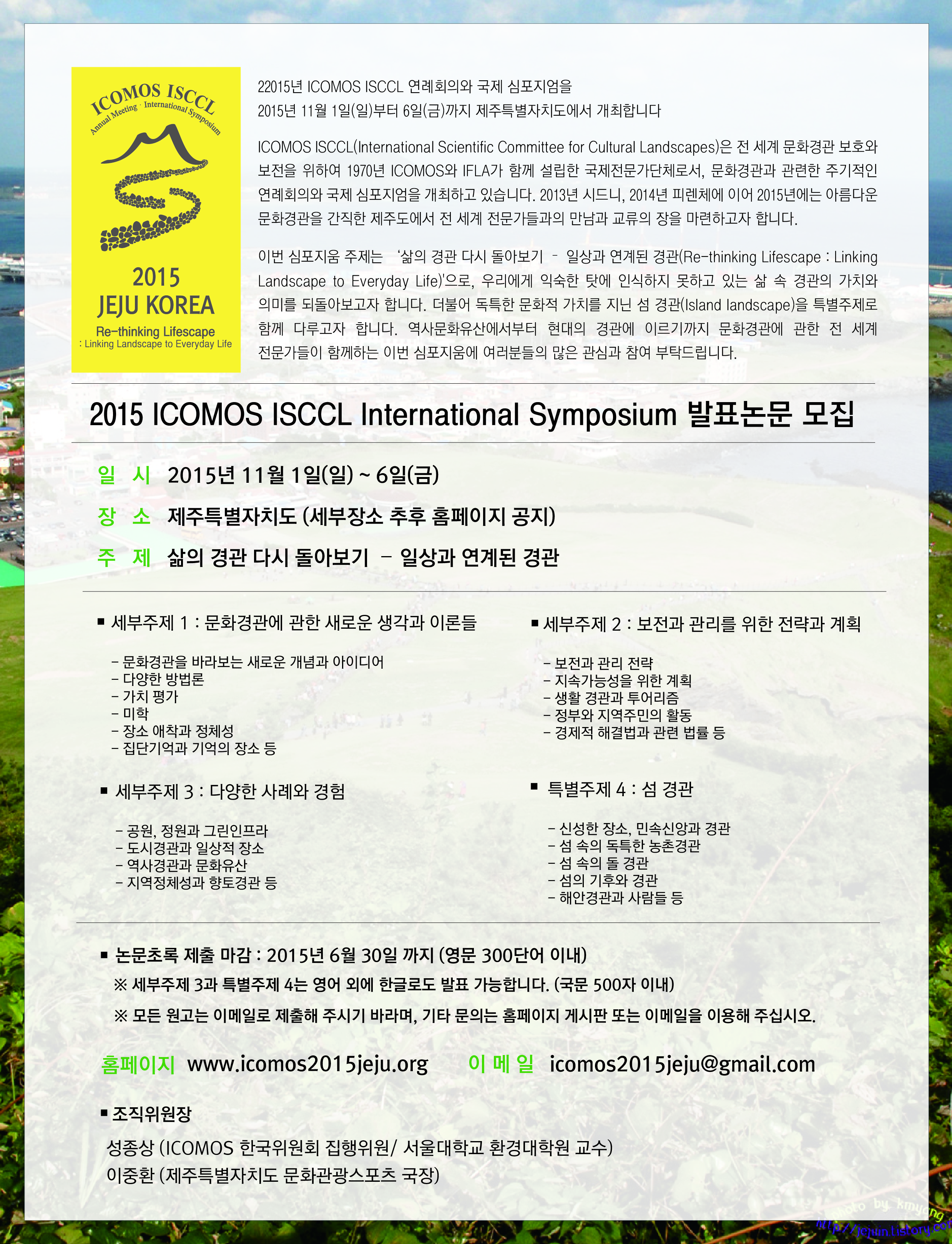 <2015 ICOMOS ISCCL International Symposium 발표논문모집>
